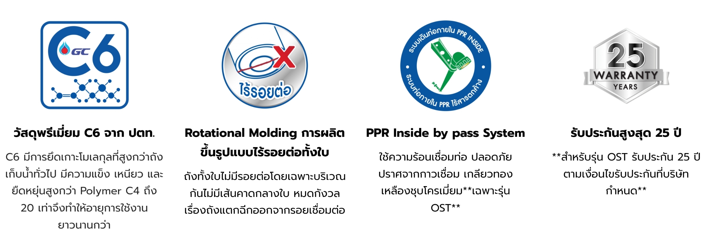 ![]() รับประกันสูงสุด 25 ปี**สำหรับรุ่น OST รับประกัน 25 ปี ตามเงื่อนไขรับประกันที่บริษัทกำหนด** |