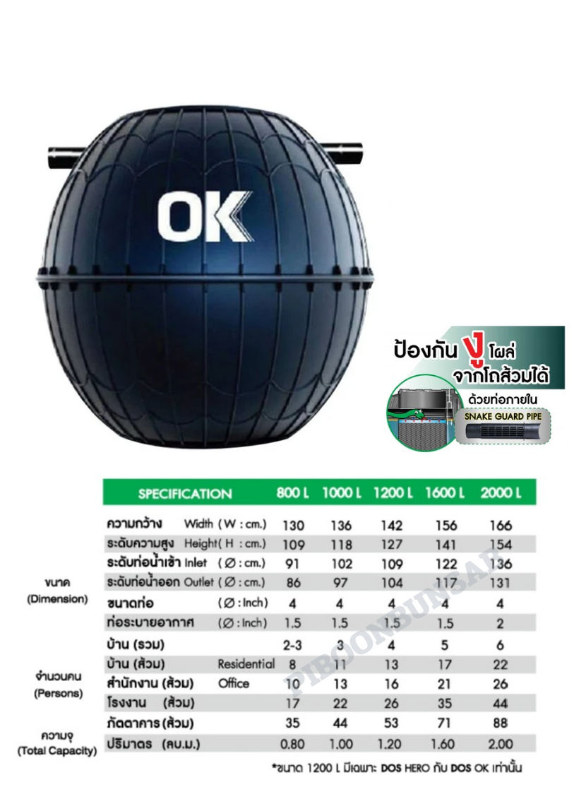 • ถังบำบัดน้ำเสีย DOS OK โดยใช้วัสดุและกระบวนการผลิตแบบพิเศษให้ตัวถังมีความหนา แข็งแรงกว่าเดิม