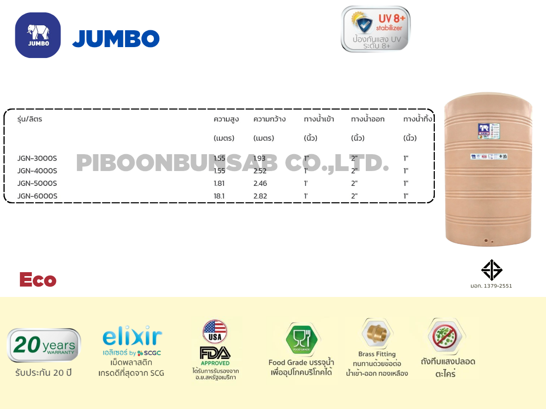 - รับประกันสินค้านาน 20 ปี