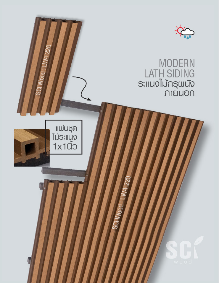 ไม้ผนังภายนอก Lath Panel LW4-220 Sไม้กรุผนังภายนอก (คอนเซ็ปไม้ระแนง 1x1 นิ้ว ร่องห่าง 1 นิ้ว เป็นแผ่นติดตั้งง่ายมาก) |